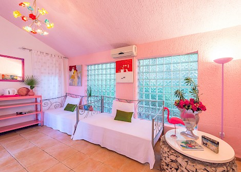 Two separate entrances and a spacious private terrace. Close to Meneghello restaurant, convenient for families using baby monitors. Ideal for families with small children. (2+2 guests).